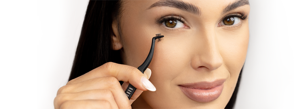 Αφαιρέστε το τουφάκι βλεφαρίδων από τη θήκη χρησιμοποιώντας το απλικατέρ, πιάστε ολόκληρο το τουφάκι προσέχοντας να μην καταστρέψετε την αυτοκόλλητη επίστρωση